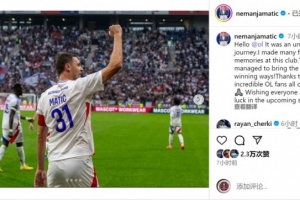 马蒂奇社媒写道:“大家好,里昂球迷们。这是一段难忘的旅程!我在这家俱乐部留下了许多永恒的回忆。