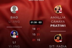 体育资讯2月1日讯 2026年泰国羽毛球大师赛女双决赛,鲍骊婧/李怡婧1-2不敌阿玛莉亚/拉马丹蒂,无缘女双冠军。