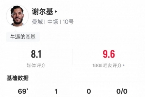 体育资讯2月2日讯 英超第24轮焦点战,曼城客场2-2热刺。谢尔基首发出战,打进1粒进球,送出1次关键传球,还有2次过人成功,评分8.1。