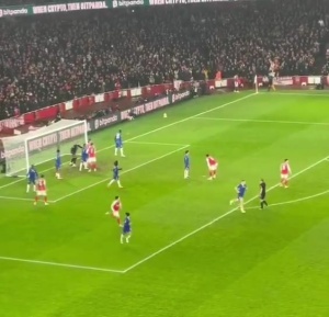 比赛中一段切尔西针对阿森纳角球的战术策略视频在推特上引发热议,蓝军3名球员一反常态冲向中圈,准备反击。