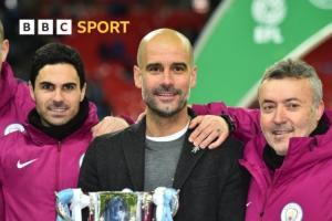 当时曼城3-0阿森纳取胜,瓜迪奥拉捧起了执教曼城后的首座冠军奖杯,而他当时的助教团队中,有一人正是如今的阿森纳主帅阿尔特塔!
