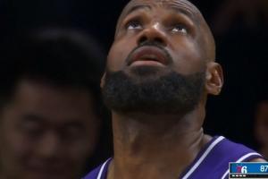 里夫斯脚踏拖鞋踩着Logo勾手命中 随后竖中指嘲讽一旁的东契奇