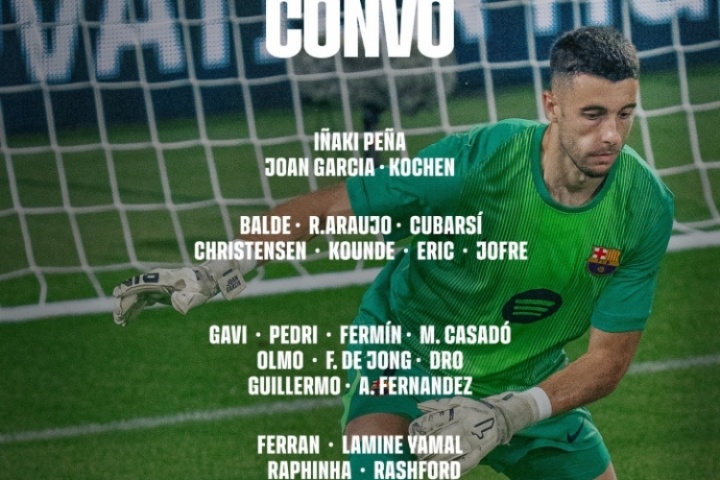 体育资讯08月16日讯 巴萨公布西甲首轮大名单,加西亚、拉什福德在列,无什琴斯尼莱万。