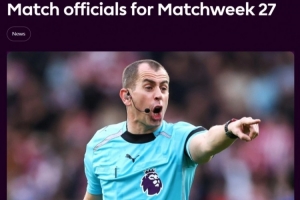 体育资讯2月17日讯 英超官方公布联赛第27轮各场执法裁判,彼得·班克斯(上图)执法热刺vs阿森纳,安东尼·泰勒执法诺丁汉森林vs利物浦。