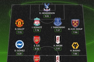 体育资讯2月24日讯 英超第27轮比赛已经结束全部争夺,WhoScored评选出了本轮比赛最佳阵,约克雷斯、埃泽入选,达洛特、科纳特在列。