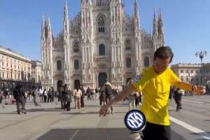 赛后博德闪耀的社媒发布一则视频,视频中是一名博德闪耀球迷在米兰大教堂前颠球,皮球被P成了国米的队徽,博德闪耀配文:Ballek i Milano(在米兰颠球)。