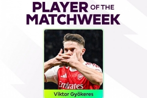 体育资讯2月25日讯 英超官方消息,阿森纳前锋约克雷斯当选联赛第27轮最佳球员。