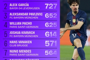 体育资讯2月26日讯 Squawka统计了本赛季球员在欧冠比赛中的成功传球次数,并列出榜单,维蒂尼亚1028次成功传球断层领跑。