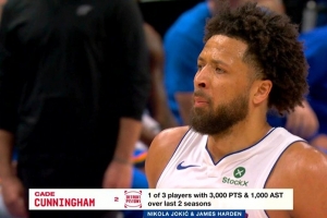 比赛中转播方晒出一组数据,近2个赛季联盟仅有3名球员合计拿到了3000分+1000助。他们分别是: