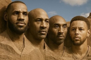 Fastbreak Hoops晒出了由乔丹、詹姆斯、科比、库里组成的总统山图片,并写道:“NBA总统山。”