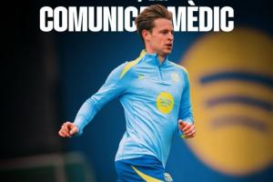 体育资讯02月26日讯 巴萨官方通报德容伤情,一线队球员弗伦基·德容在今日上午的训练中,右大腿远端肱二头肌受伤。