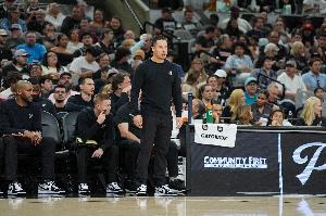 马刺目前43胜16负继续排在西部第二,距离身前的雷霆仅差1.5个胜场。