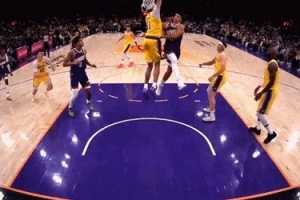 GIF-格雷森·阿伦突破被海斯犯规,湖人挑战失败,但裁判判定非投篮犯规,所以没有罚球