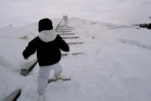 他写道:“儿子第一次看到雪❄️吃不完的海胆😋找各种各样的方式不让我打呼吵醒大家😂”
