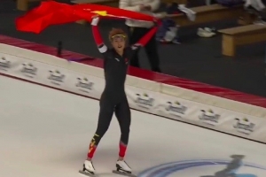 速度滑冰世青赛男子5000米决赛:中国选手刘瀚彬夺冠