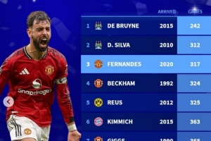 体育资讯3月2日讯 在本轮英超,曼联2-1击败水晶宫,B费送出助攻,这也是他曼联生涯317次出场送出的第100次助攻。以下为五大联赛中场球员为单一球队送出100次助攻最快用时榜: