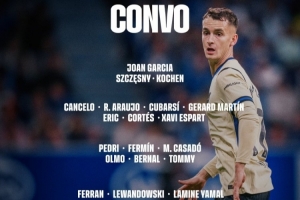 后卫:坎塞洛、阿劳霍、库巴西、赫拉德·马丁、埃里克·加西亚、阿尔瓦罗·科尔特斯、哈维·埃斯帕特