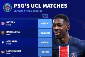 巴黎本赛季欧冠对手身价:
