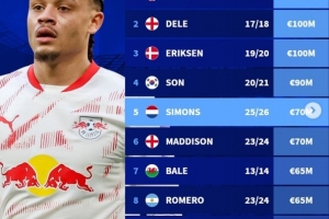 体育资讯8月30日讯 本周五,热刺官方宣布以6000万欧元从莱比锡签下哈维-西蒙斯。根据德国转会市场提供的数据,西蒙斯的身价为7000万欧元,在热刺队史足以排在第5位。