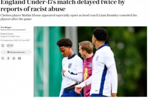 体育资讯9月4日讯 《电讯报》报道,英格兰U17在德国参赛时遭遇种族主义辱骂,致使主裁判两次中断他们2-1战胜委内瑞拉的比赛。