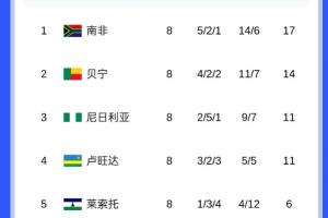 8轮过后,尼日利亚2胜5平1负排在小组第三,进世界杯形势艰难。