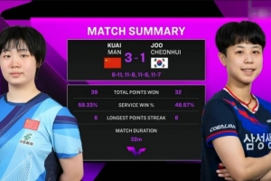 体育资讯9月10日讯 WTT中国澳门冠军赛女单1/16决赛,蒯曼3-1战胜朱芊曦 ,成功晋级,下一轮将对阵伊藤美诚。