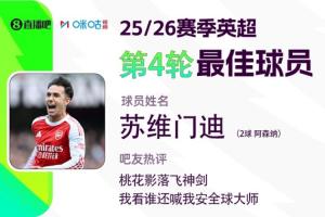 2025-2026赛季英超火热进行中,体育资讯和咪咕体育联合发起每轮英超最佳球员评选活动!第四轮评选结果结出炉,苏维门迪头顶脚踢梅开二度,帮助阿森纳3-0大胜诺丁汉森林,获得吧友超14万票的支持,以绝对优势当选 【体育资讯X咪咕体育英超第4轮最佳球员】!