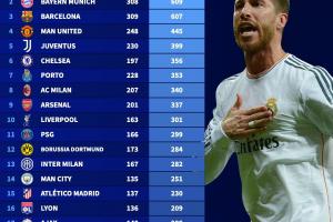 体育资讯09月16日讯 明晨新赛季欧冠打响,德转列出欧冠(自1992/93赛季开始)总积分排行,皇马661分第一,拜仁、巴萨二三,曼联第四。