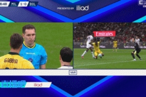 法布里(VAR助理裁判)对马尔切纳罗(主裁判)说: