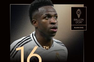 体育资讯9月23日讯 2025年金球奖排名公布,维尼修斯最终排名第16。