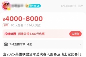 目前二手交易平台已出现入围赛iG对阵T1的赠票,该票售价4000-8000!