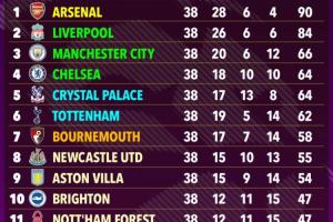 超级计算机预测英超排名: