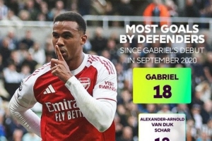 体育资讯9月29日讯 数据显示,自2020年9月上演英超首秀以来,阿森纳后卫加布里埃尔已成为同期联赛中进球最多的后卫,以18粒进球高居榜首。