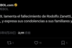 南美足联写道:“南美足联对萨内蒂的父亲鲁道夫-萨内蒂的去世表示哀悼,并向他的家人和朋友致以诚挚的慰问。”