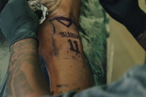 从照片中可以看到,特雷-杨在自己左腿膝盖的两侧分别纹上了自己高中和大学的球衣。特雷-杨高中就读俄克拉荷马州诺曼市的Norman North High School,大学则是就读俄克拉荷马大学。