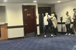 在欧冠新闻发布会结束后,穆里尼奥与切尔西的新闻官特蕾莎-康妮莉拥抱,赢得了在场其他人的掌声。