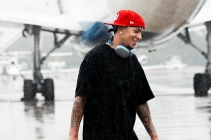 而在登机的时候,天下正下着不算小的雨,但黄蜂众将没有一个选择撑伞,都是冒着雨不慌不忙的上飞机。