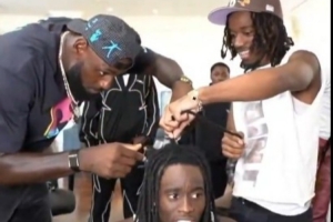 在直播中,为庆祝凯-塞纳特Twitch订阅人数突破100万,詹姆斯为其剪掉了脏辫。