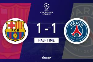 体育资讯10月2日讯 欧冠联赛阶段第2轮,巴塞罗那坐镇主场路易斯孔帕尼斯奥林匹克体育场迎战巴黎圣日耳曼。上半场,拉什福德助攻费兰先拔头筹,扎巴尔尼门线解围+失良机,马尤卢扳平比分。半场战罢,巴萨1-1巴黎。
