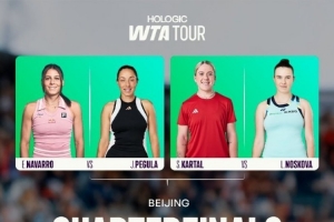 本届中网女单1/4决赛对阵情况:纳瓦罗vs佩古拉、卡塔尔vs诺斯科娃、保利尼vs阿尼西莫娃、利斯vs高芙。