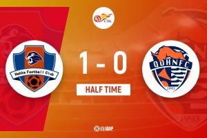 第44分钟,梅州客家取得领先,茹子楠右脚远射,皮球发生折射后飞入球网,梅州客家1-0领先青岛海牛。↓