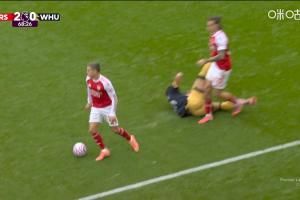 体育资讯10月04日讯 英超第7轮,阿森纳vs西汉姆联。比赛第69分钟,帕奎塔倒地后蹬踹卡拉菲奥里,被出示黄牌。