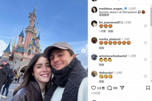 玛达莱娜与内维斯一起来到迪士尼乐园游玩,玛达莱娜社媒晒出照片,配文:“迪士尼乐园万圣季。”