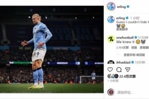 哈兰德社媒晒出进球后机器人舞蹈庆祝动作的照片,调侃配文:“看来是藏不住了🤖😅”