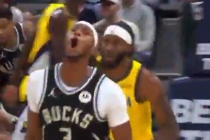 这谁能忍得住....巴图姆&小琼斯边线发球连着送!卢瞪眼睛&卡看呆