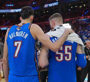 上半场,国王外线优势明显,比雷霆多命中6记三分,但面对雷霆双塔办法不多,内线得分14-36净负22分。