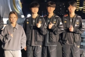 体育资讯11月8日讯 邓紫棋与T1全队合影,紧挨Faker占据C位,表示很开心来唱主题曲。