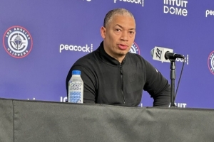 体育资讯记者今日前往现场跟进了快船vs老鹰的比赛,并在赛后参加了新闻发布会,以下是小吧为大家整理的泰伦·卢的部分采访内容。