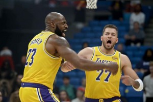 解说:湖人三巨头轮番发威 他们的上限特别高 但是下限不高