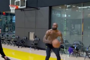 稳定发挥!詹姆斯首节3中2拿到5分1板1助1帽
